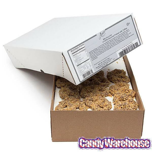 Box contains 6 pounds of Toffee Bits Chocolate Covered Pretzels Candy.