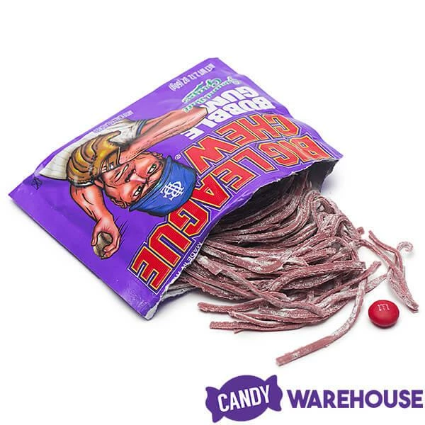 Chew, spit, and adjust like real big-league ball players with these Ground Ball Grape soft bubblegum tobacco pouches. Just a pinch between your cheek and gum will do the trick!