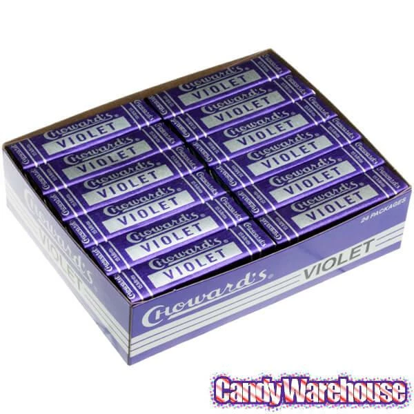 Display box contains 24 packs of C Howard’s Violet Mints Candy Squares.