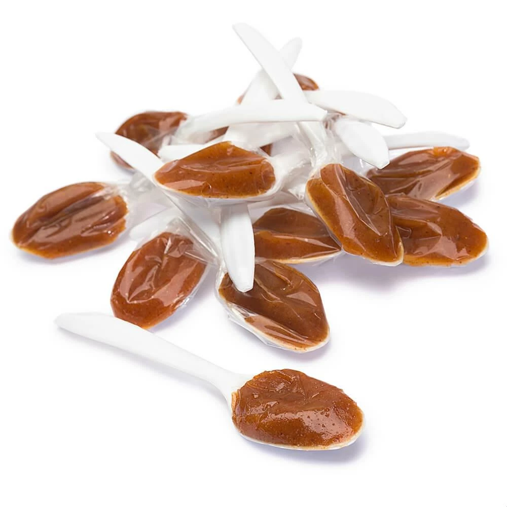 Delicious tamarind flavored chewy candy paste is scooped into white plastic spoons to create this Mexican candy classic! What is tamarind (or tamarindo)? The tamarind tree produces a sour fruit that is mashed and mixed with sugar to create a distinct flavor profile offered in a handy spoon perfect for snacking on-the-go. Stuff one in a lunch box or fill a bowl in the office lunch room. Simply unwrap and start sucking! Each treat delivers one heck of a fiesta for the taste buds – sweet, sour, and spicy. Delicioso!