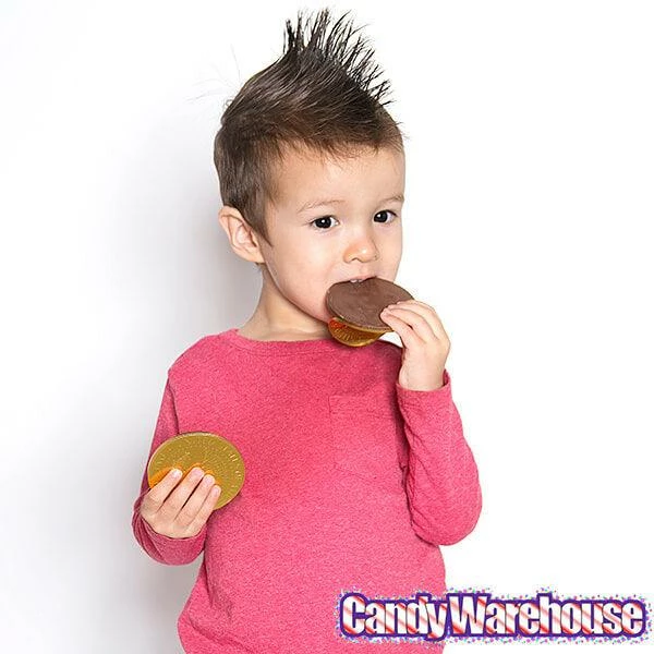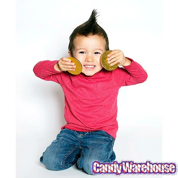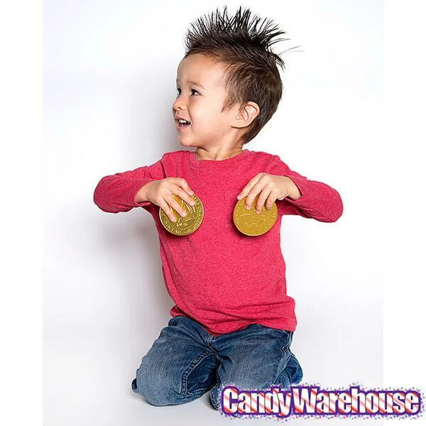 Donโt tell the United States Treasury Department. We may have broken into Fort Knox and made off with a bunch of their limited edition gold-plated dollar coins. Then again, we may have simply embossed thirty milk chocolate disks with intricate 3-D designs that look like real dollar coins, and then wrapped them in shiny gold foil to make an impression at your next party. Youโll have to try them for yourself to find out which is true. Basically, if you can take off the foil and bite into soft, creamy milk chocolate, then the Treasury Department has nothing to worry about.