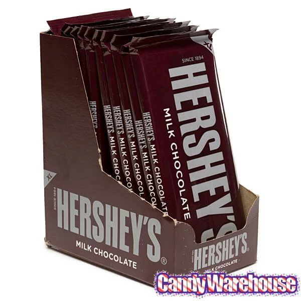 Display box contains 12 massive Hershey’s Milk Chocolate Candy Bars, each with a net weight of 4.4 ounces.