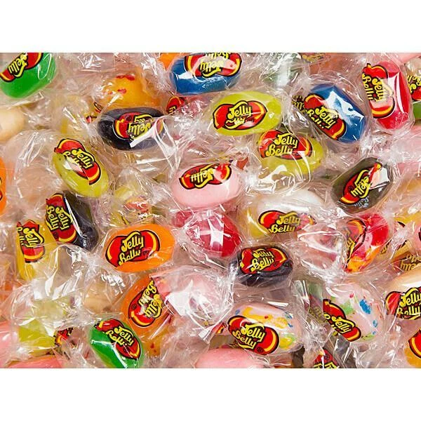 Case contains 5 pounds of Wrapped Jelly Belly Assorted Jelly Beans Candy.