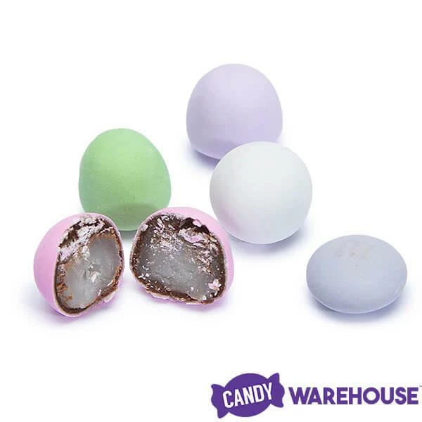 Creamy peppermint and chocolate co-mingle inside lavender, mint green, pink, and white candy shells!