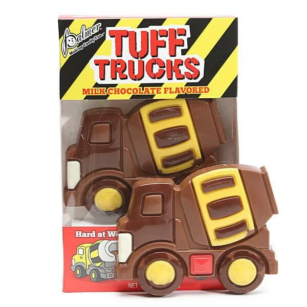 Display box contains 18 packs of Tuff Trucks Chocolate Candy Construction Trucks.