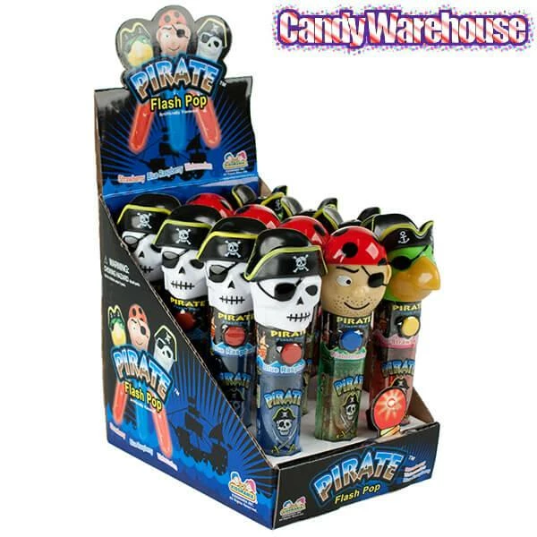 Display box contains 12 Pirate Flash Pop Suckers.
