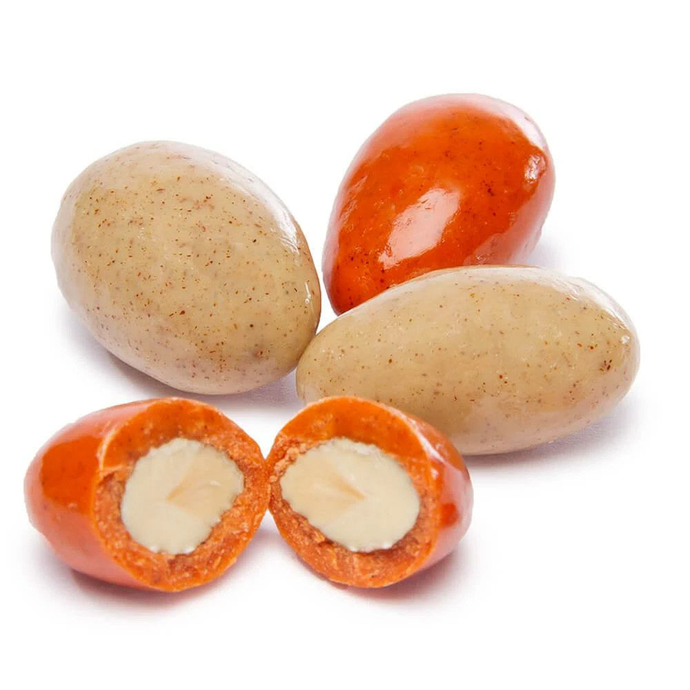 Celebrate fall harvest with a handful of almonds drenched in pumpkin pie flavor– they’re a decadent treat! Lightly roasted almonds offer a savory companion to sweet white chocolate, and pumpkin pie coating, thereby creating the perfect autumn-themed candy indulgence. Enjoy them alone or with a yummy cup of steamed milk.