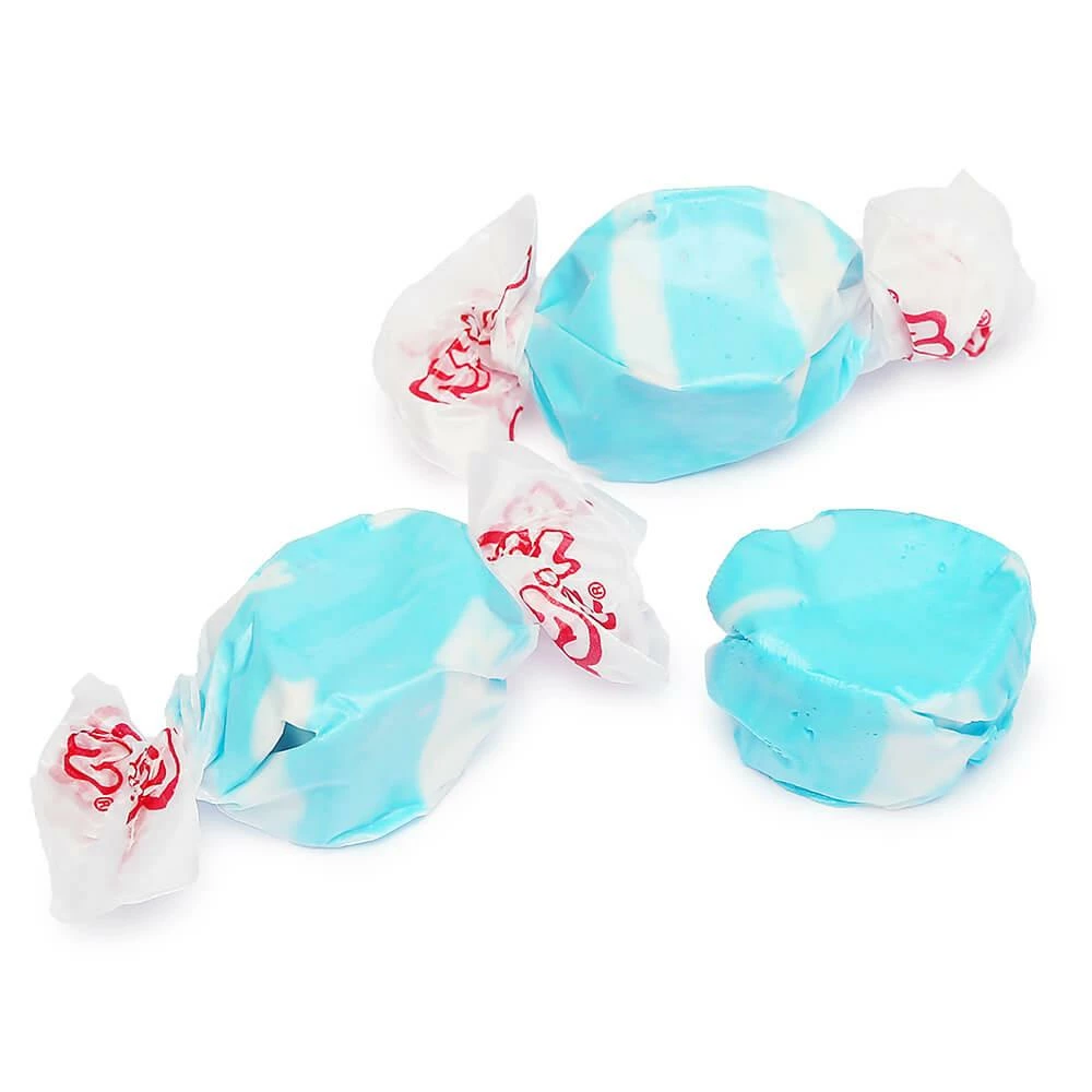 Bag contains 2.5 pounds of Gourmet Blueberry Salt Water Taffy Candy.