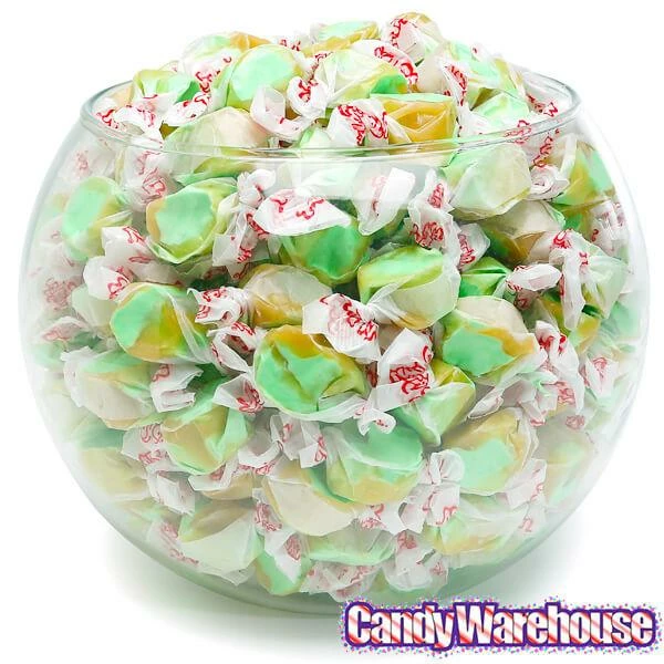 Bag contains 2.5 pounds of Gourmet Caramel Apple Salt Water Taffy Candy.