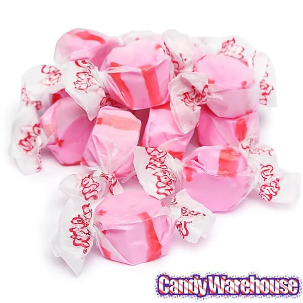 Bag contains 2.5 pounds of Gourmet Cherry Salt Water Taffy Candy.