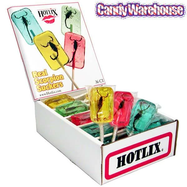 Yes! It is a genuine edible Scorpion! Each scorpion is masterfully encased in a mouthwatering hard candy sucker. Each set contains four colors: red, yellow, green, and blue.