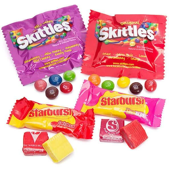 Looking to strike fruit flavored gold? Well then, try your luck with this bag of richly flavored bite size treats. Including an assortment of Skittles and Starburst this will be the equivalent of hitting the jackpot. Since you have a giving personality, you’ll be pleased to know that you can share the wealth with comrades who are also mining for a fruity rush. The assortment of tropical fruit flavors and original rainbow colored candies will have their taste buds forever indebted to your kindness.