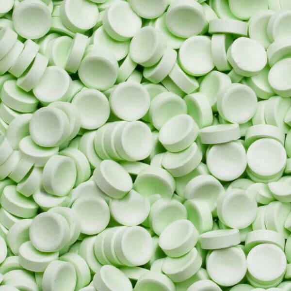 Bag contains 5 pounds of Pastel Green Smarties Tangy Sugar Buttons Candy.