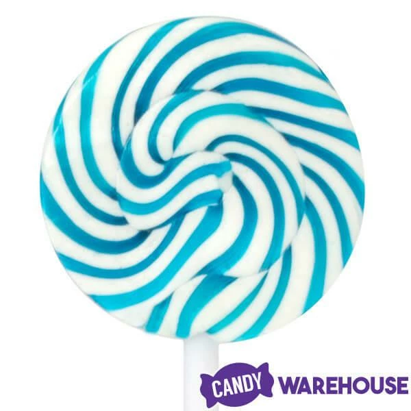 Jar contains 24 individually wrapped Squiggly Pops Petite Blue & White Swirl Lollipops.