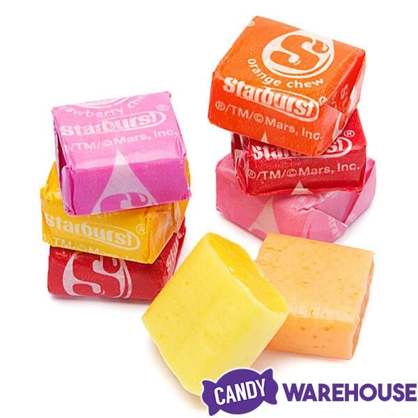 Starbursts candy… a galaxy full of fruity flavor is packed into these stars of the confectionery universe. A chewy burst of refreshing fruit flavor, Starburst Fruit Chews are classic, bite-size, square-shaped taffies that have been making mouths water since 1959. They are easily recognized as the quintessential summertime candy snack, delivering sweet, refreshing fruit flavors in every piece.