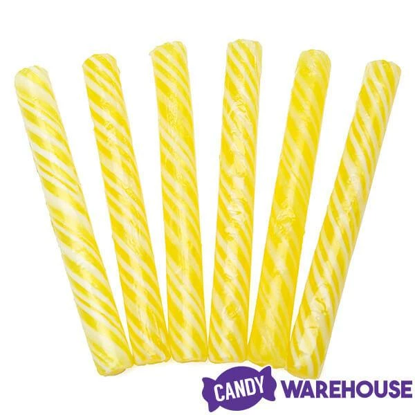 Jar contains 50 individually wrapped Yellow Sweet Spindles Mini Hard Candy Sticks.