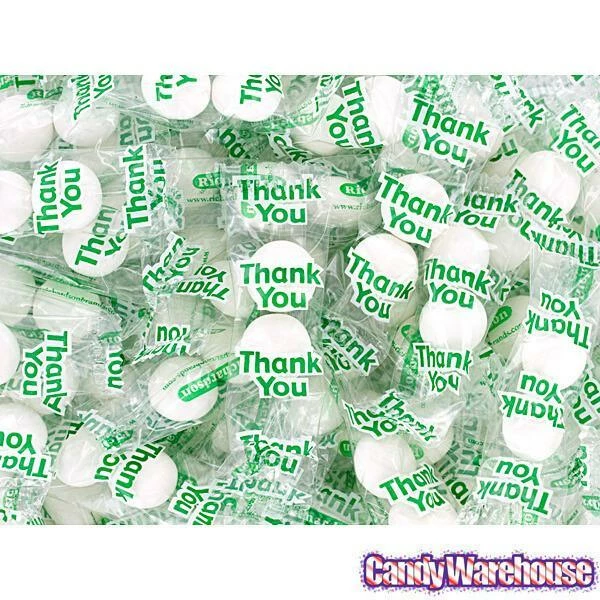 Delicious white candy-coated chocolate mints inside “Thank You” packets!