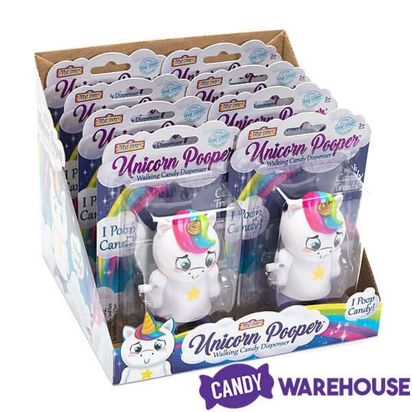 Display box includes 8 Wind-Up Unicorn Candy Poopers, each with approximately 12 pieces of candy.